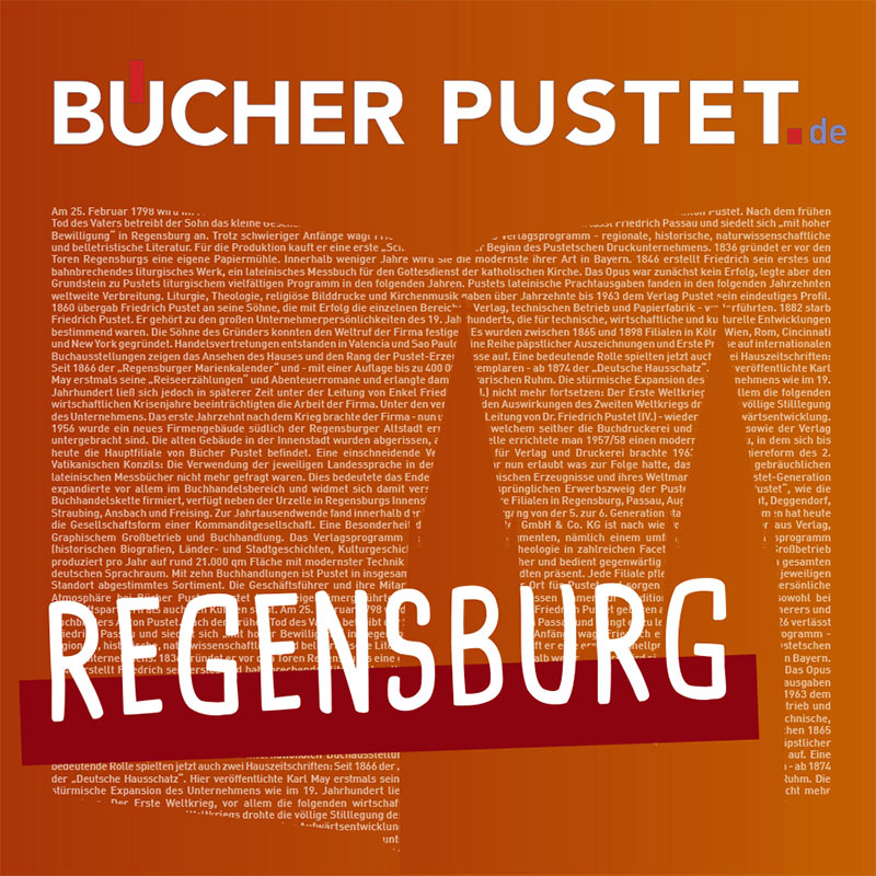 <h3>Pustet</h3><p>Entdecken Sie bei Bücher Pustet die Vielfalt der Bücherwelt in vier außergewöhnlichen Buchhandlungen: Im Herzen der Regensburger Altstadt in der Gesandtenstraße und in der Dombuchhandlung, sowie im Donau-Einkaufszentrum und am Campus der Universität.</p><a href="https://www.pustet.de" target="_blank">www.pustet.de</a>